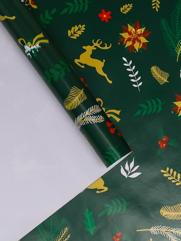 Бумага 0.7х10 м Крафт Звезды зеленый/золото |