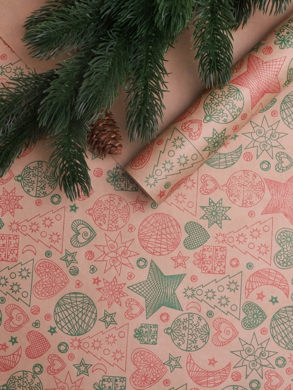 Бумага 0.7х10 м. Дизайнерский крафт "Кутюрье кор/красн/зел" |